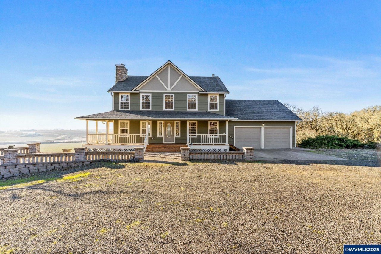 Astonishing views from this custom, private hilltop estate in Van Duzer Corridor AVA! Overlooking Cascade Mtn???s, nearby vineyard, & Valley below, this 3,921 SF hm offers well placed decks, beautiful stone patios, & view windows to capture it all. W/spacious open living areas, 5bd + off, 4ba, updated kitchen, new roof & carpets, 2-FP w/wdstv inserts, & full fin. bsmt there???s plenty of room to enjoy. Includes fenced pasture areas, ±73-ac cropland, oak savanna, shop, & barn + 8' lean-to. Easy commute location!